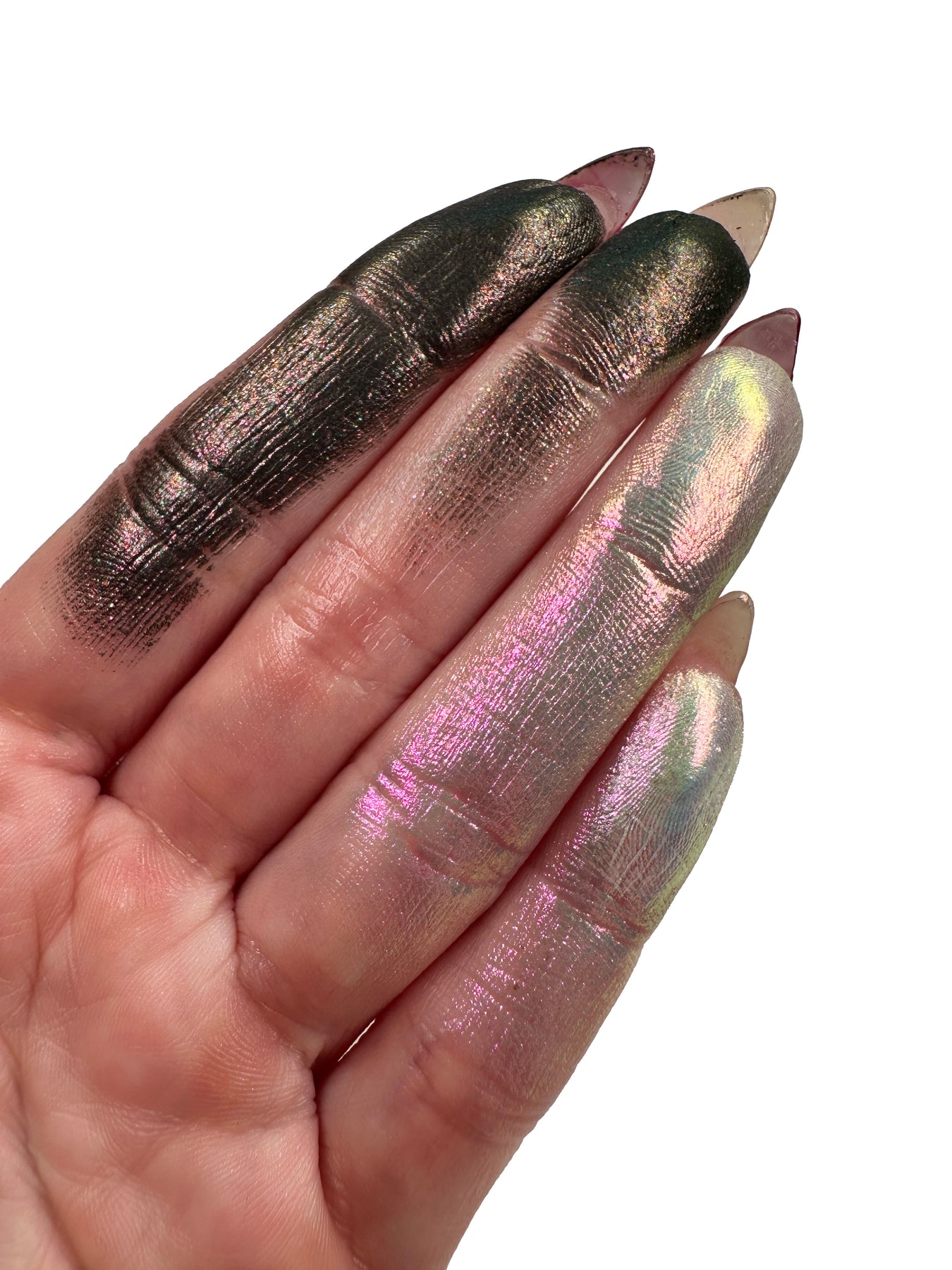 TIPS: Apply with your favorite shadow brushes. Flat and firmer brushes will give the most color payoff. Try using a setting spray to wet your brush, or use a glitter primer for larger particle mica pigments before applying for a more intense finish.